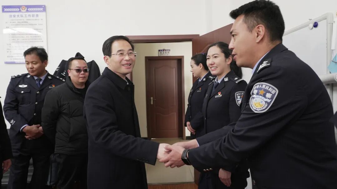 在米林市公安局,颜世辉先后走进治安、政保、网安、法制等业务科室。“节日好!感谢大家的辛勤付出!”每到一处,他都与正在紧张工作的民警亲切交谈,详细了解各项业务开展情况,感谢大家为维护社会大局稳定、保障人民安宁所做出的不懈努力,并送上诚挚的节日祝福。他勉励大家要牢记使命,忠诚履职,在各自岗位上再立新功,不断提升专业素养和实战能力,积极适应新时代公安工作新要求。