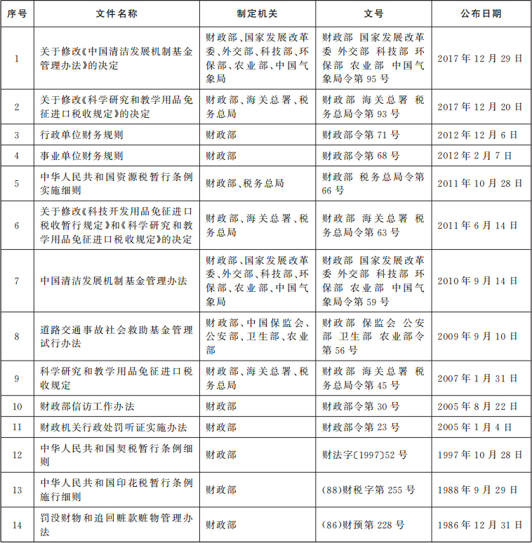 废止和失效的财政规章和
