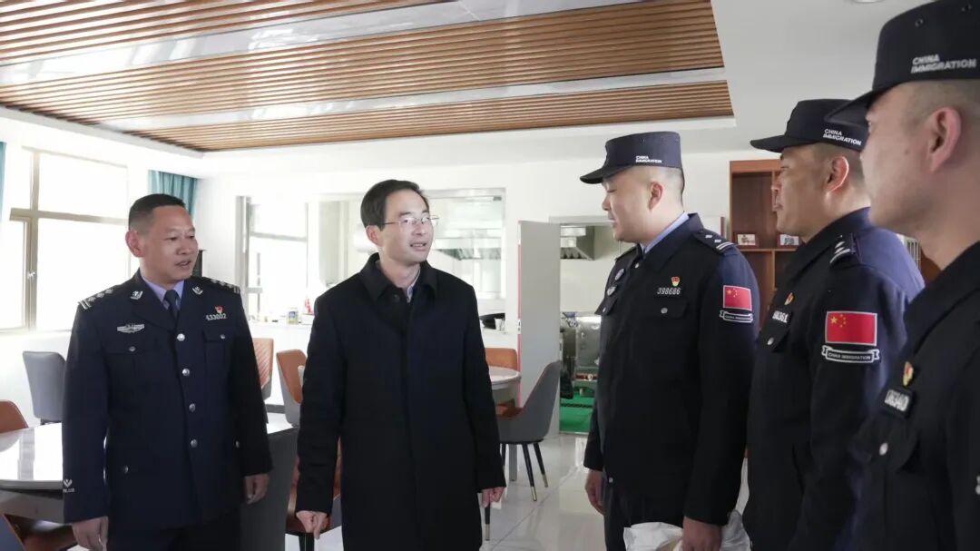 冬日暖阳,情暖警营。颜世辉首先来到市边境管理大队。身着整齐制服的边境警察精神抖擞,列队欢迎。“大家辛苦了!祝你们节日快乐!”颜世辉走上前去,与民警们一一握手,并为他们献上洁白的哈达。他深入机关食堂、干部宿舍、业务科室,细致察看生活工作环境,关切询问民警们“伙食怎么样?”“住宿条件如何?”“家里有没有什么困难?”声声问候,句句叮咛,饱含着对基层民警生活冷暖的深切挂念。他强调,边境管理任务繁重、责任重大,要持续加强后勤保障,优化工作生活条件,让大家能够安心生活、全心工作,筑牢祖国边疆安全稳定的铜墙铁壁。