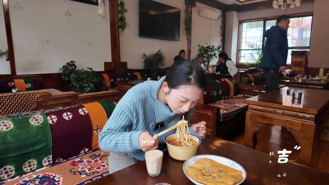 冬游西藏必打卡的早餐“三件套”——藏面 甜茶 肉饼子