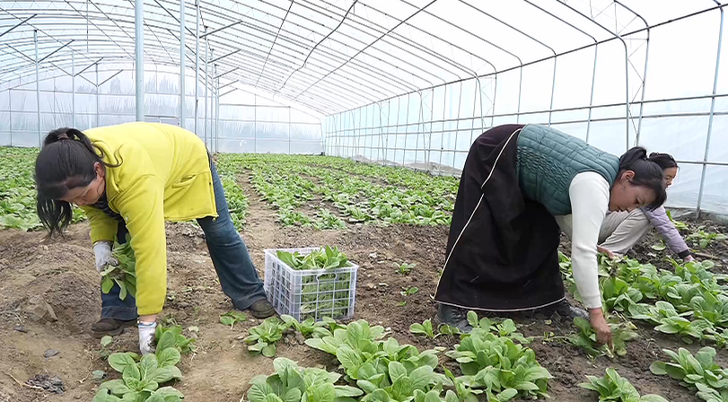 米林市雪巴村村民扎西拉姆说:“以前在家没有增收门路,如今跟着队伍一起干,足不出村就能挣钱,看着满棚绿油油的果蔬,一批批蔬菜上市售卖,大家心里踏实又欢喜。”